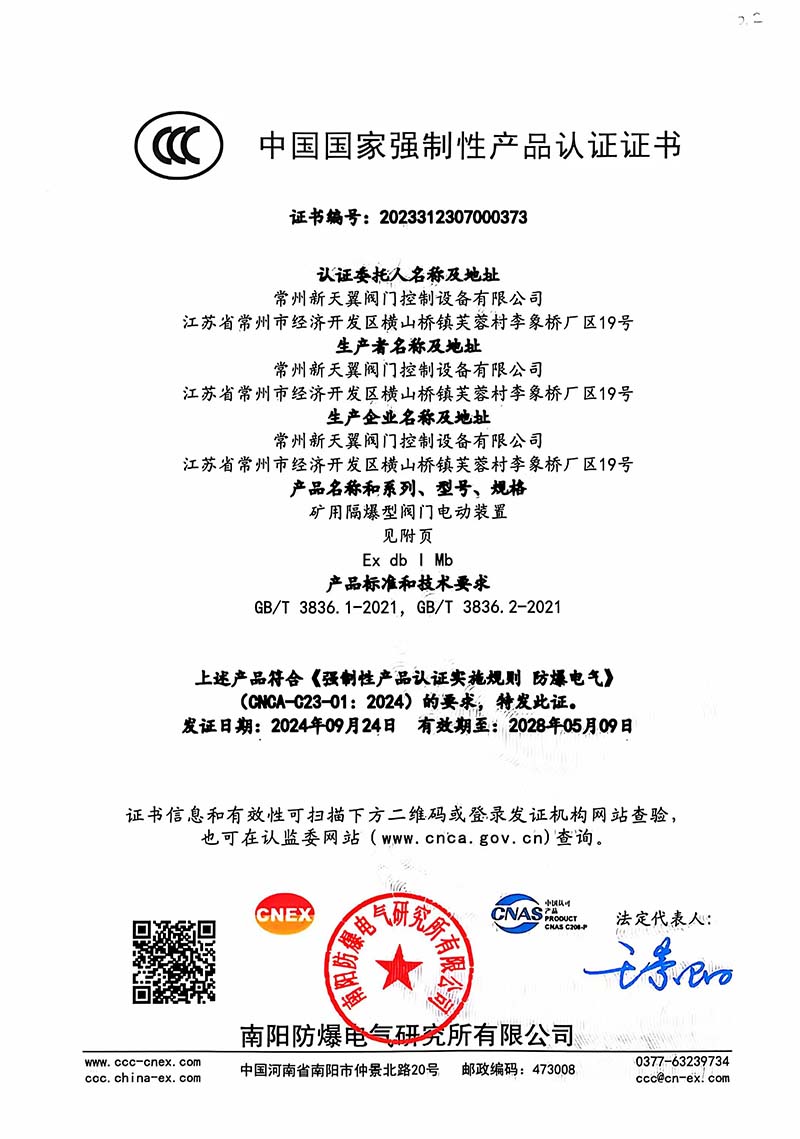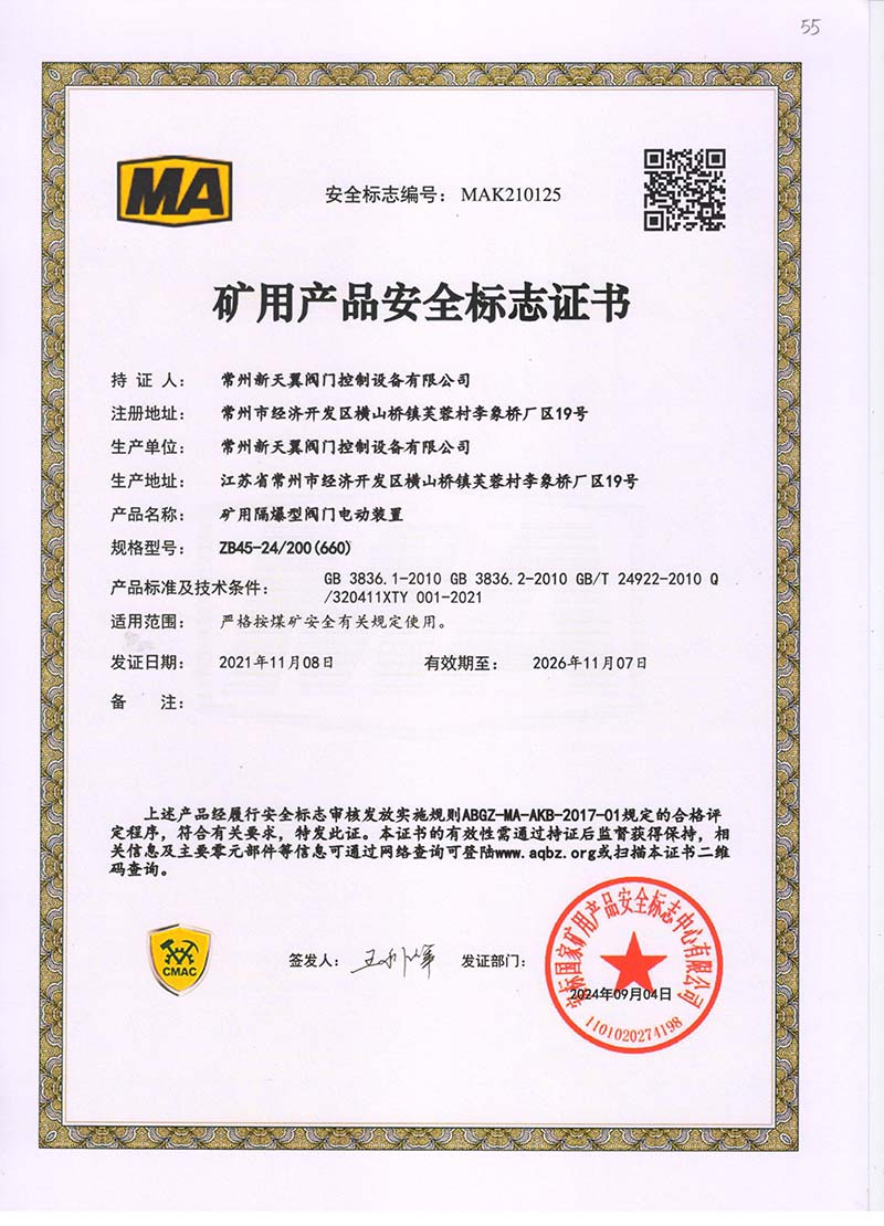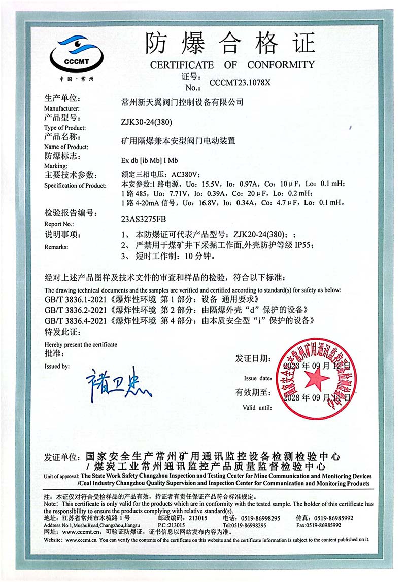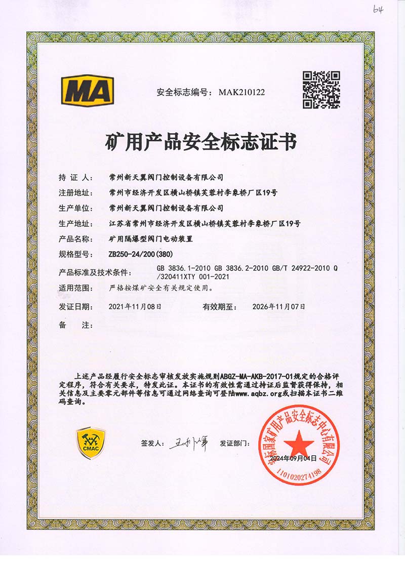 礦用隔爆ZB10-24中國國家強制性產品認證證書110.2