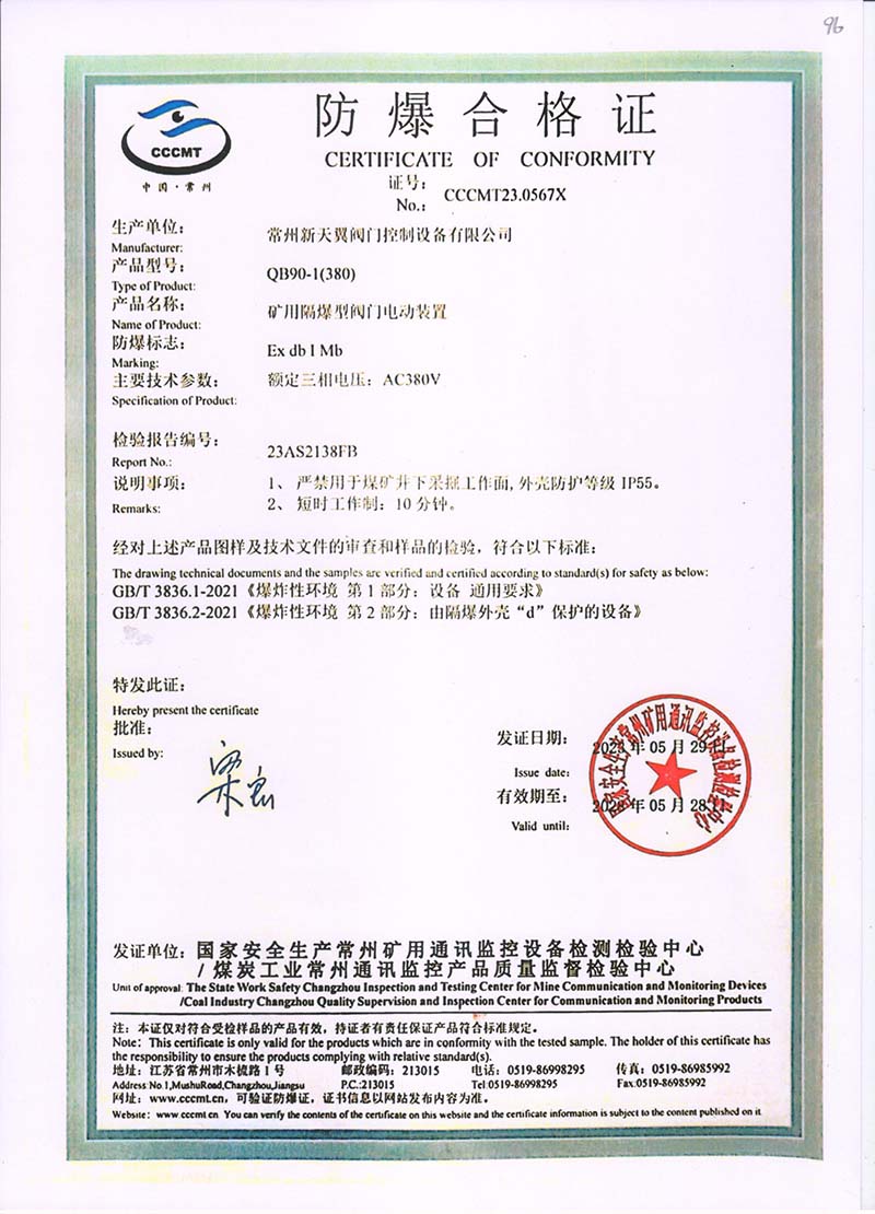 隔爆控制箱 中國國家強制性產品認證證書111.2