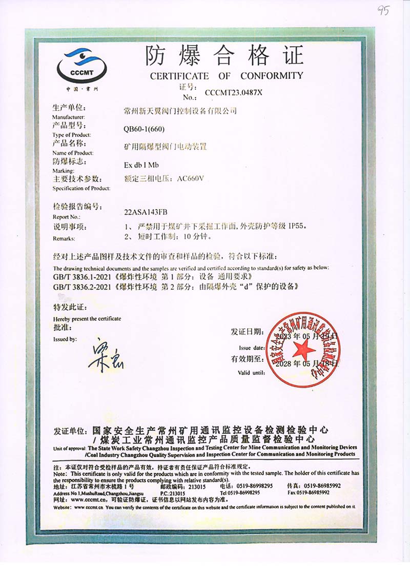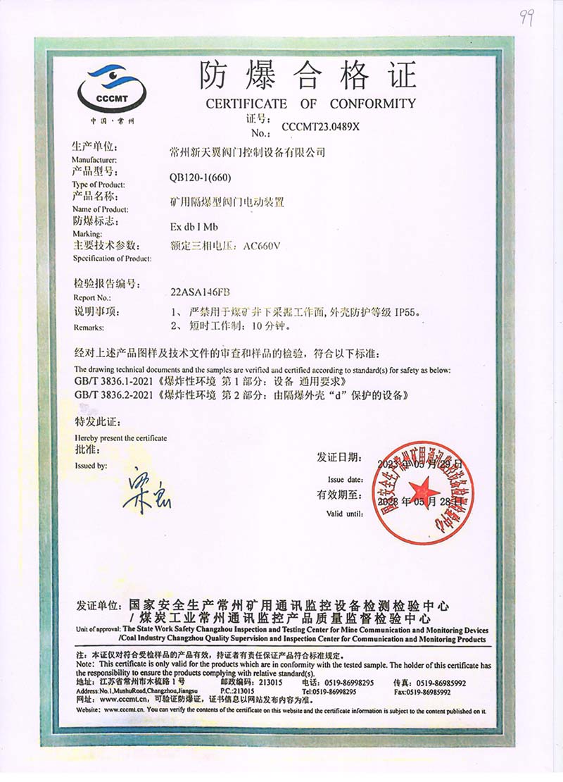 礦用隔爆QB127V中國國家強制性產品認證證書105.2