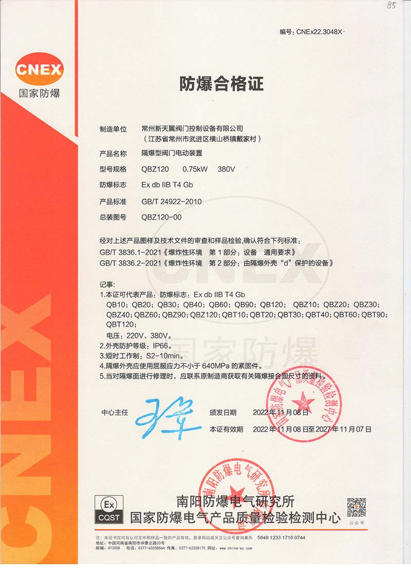 隔爆型QB QBZ QBT 220380中國國家強制性產品認證證書107.1