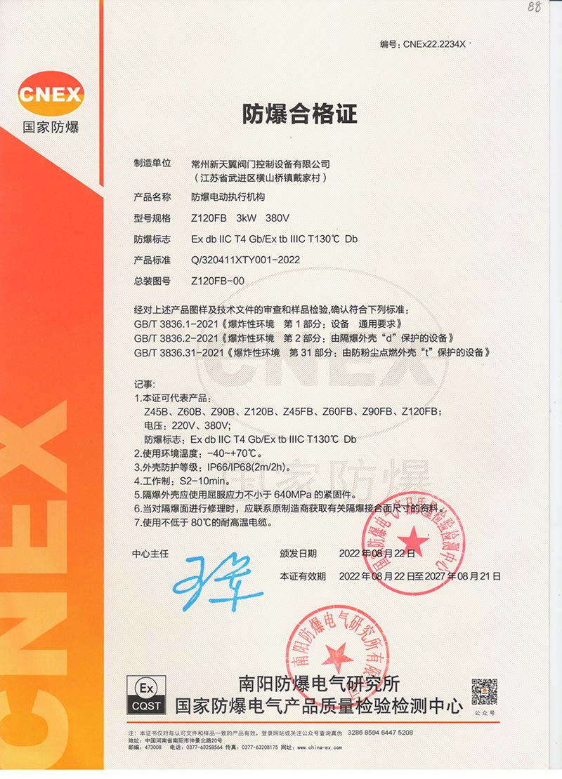 防爆Z10B Z10FB國家強制性產品認證CT4證書109.2